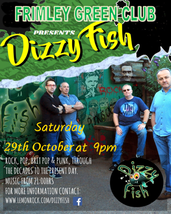 Dizzy Fish are playing at the Frimley Green Club on the 29th october 2022.They have played the main stage at Penn Festival in 2022, supporting bands such as The Hooziers...
