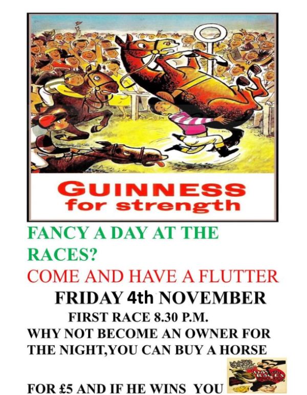 A day at the races at Frimley Green Club. Come down and have a flutter. Become an owner and buy a horse for £5.00. Friday November 4th. First race starts...